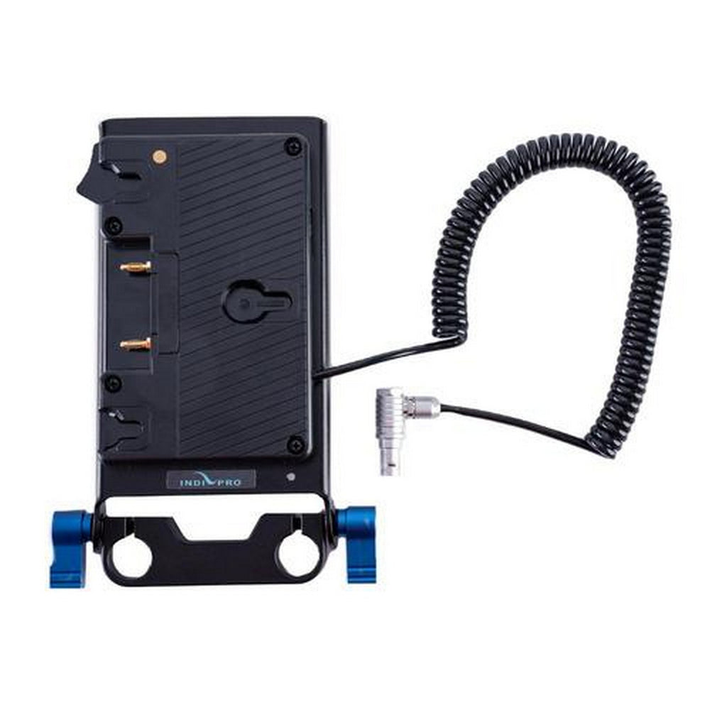 Use this Gold Mount Battery Plate with 15mm Rod Mount from IndiPRO Tools to mount a Gold mount battery on a camera rig to power a cinema camera such as a RED KOMODO, as well as power numerous accessories. The integrated coiled cable extends from 12 to 36" in length and features a 2-pin LEMO-type connector to power the camera.