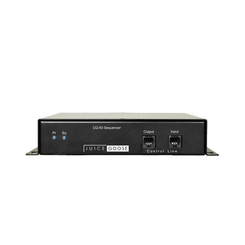 The CQ 50 is a convenient addition to the CQ product series. It functions just like the other CQ models with plug-and-play simplicity. It mounts easily to any stable surface and plugs into any fifteen-amp AC receptacle. The fifteen amp turns on with a single sequence event. Like other CQ Series models, the CQ 50 has a sequence signal line Input and Output port to allow it to be daisy chained with any number of other CQ devices.