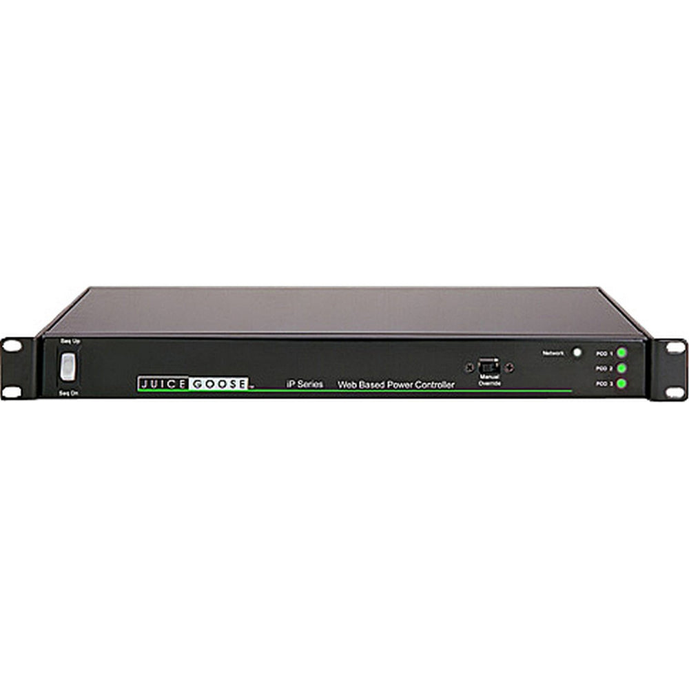 The Juice Goose iP 1515 is a microcontroller based power distribution device with AC power protection that can be accessed via internet or intranet communications using Ethernet or RS232 connection. With this remote access, individual AC receptacles can be turned on and off and monitored for electrical current flow. The iP 1515 has a fifteen amp capacity. The iP 1515 provides economical web or intranet based remote power control to six receptacles grouped into three individual Power Pods. Each of these Pods can be turned on and off individually from anywhere on the planet. In addition, current draw can be monitored from 0.2 to 15.0 amps per power POD. The iP 1515 can be controlled by the on board web server graphic interface that can be accessed by any web browser. It can also be remote controlled by RS232 or TCP/IP connection to commercial or proprietary control systems.