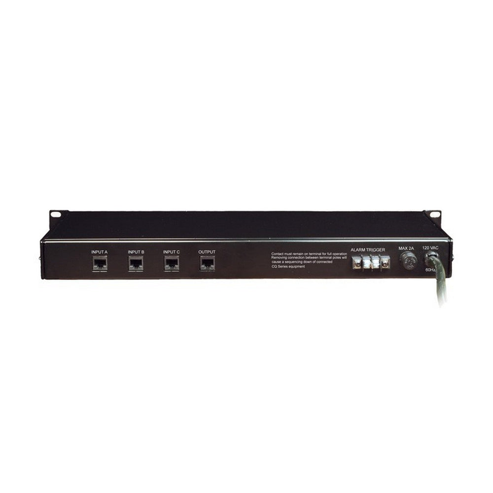 The RC-DM3 also features a contact terminal on the back of the chassis. If no contact is made across this terminal the RC-DM3 will begin an orderly sequence down process for all CQ products it controls. Connection of this terminal to a normally open alarm trigger will allow the RC-DM3 to sequence down a powered system in the event of a safety related event.