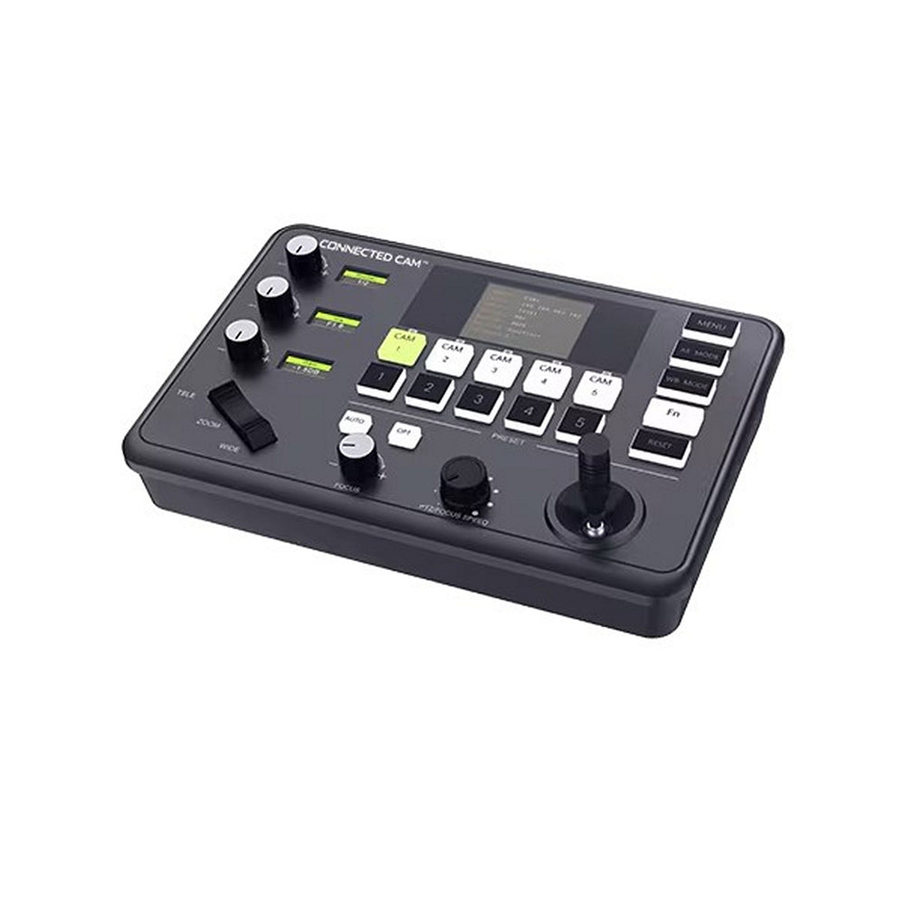 - 5 camera / 5 preset PTZ camera operation with 2-axis joystick and zoom bridge controls