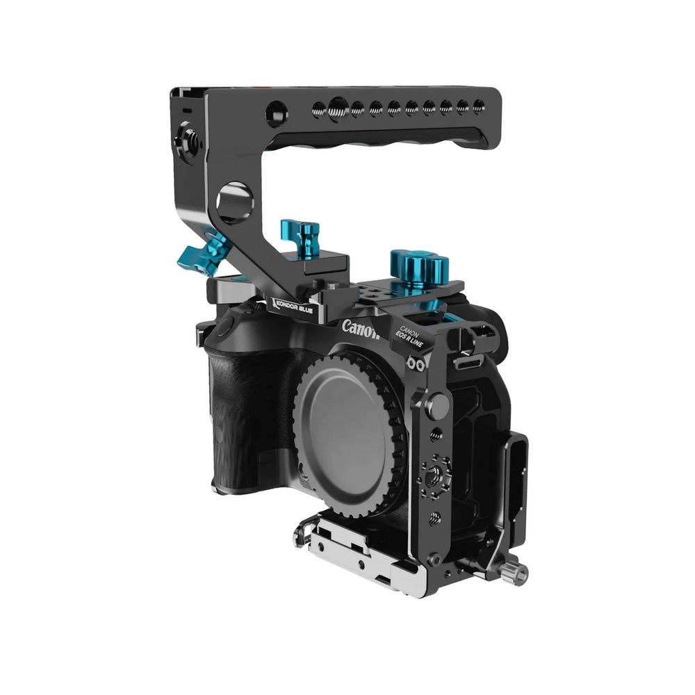 Protect your investment with a full-wrap cage made from premium materials backed by a lifetime warranty. The Canon R7 cage is built for versatility and ease of use for productions of any size. Be sure to explore all of the Kondor Blue ecosystem to further accessorize your camera.