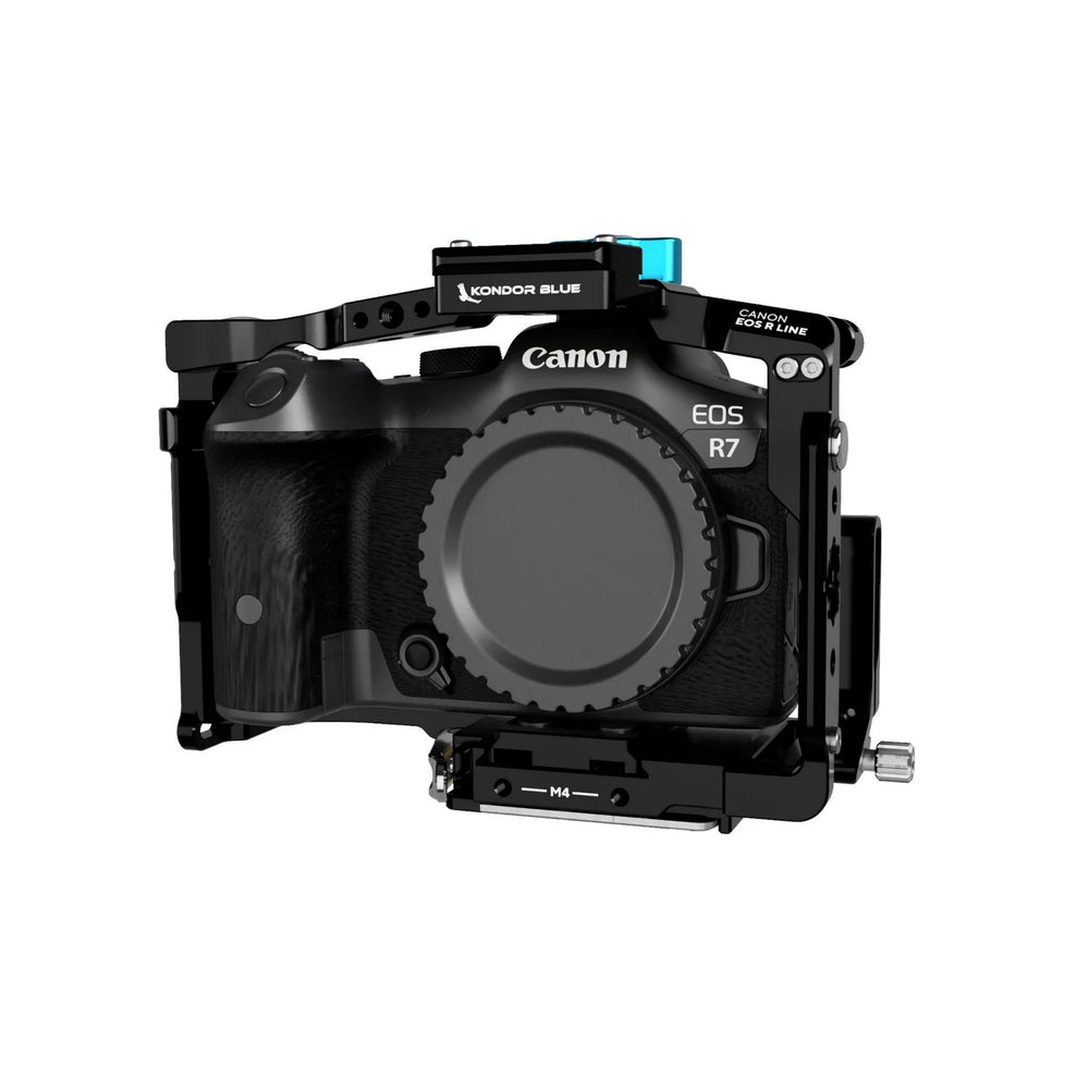 Protect your investment with a full-wrap cage made from premium materials backed by a lifetime warranty. The Canon R7 cage is built for versatility and ease of use for productions of any size. Be sure to explore all of the Kondor Blue ecosystem to further accessorize your camera.