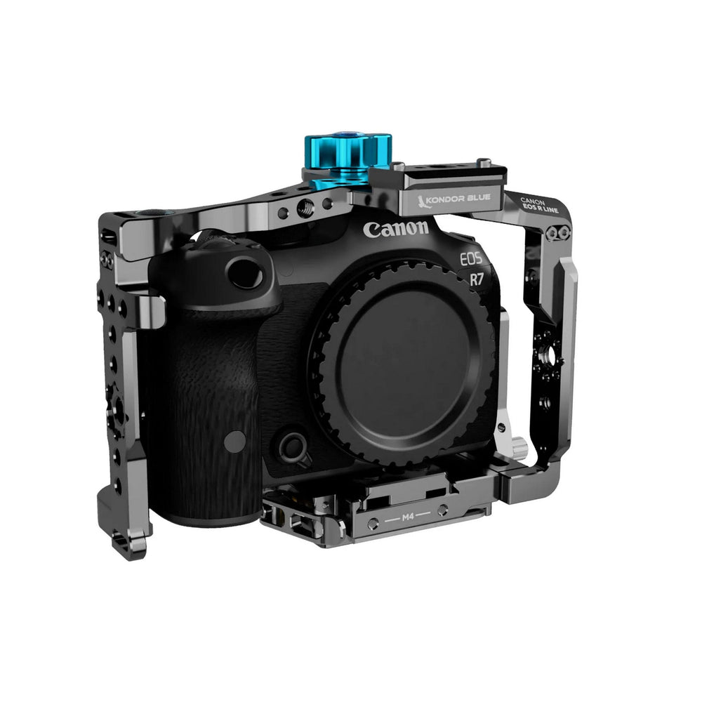 Protect your investment with a full-wrap cage made from premium materials backed by a lifetime warranty. The Canon R7 cage is built for versatility and ease of use for productions of any size. Be sure to explore all of the Kondor Blue ecosystem to further accessorize your camera.