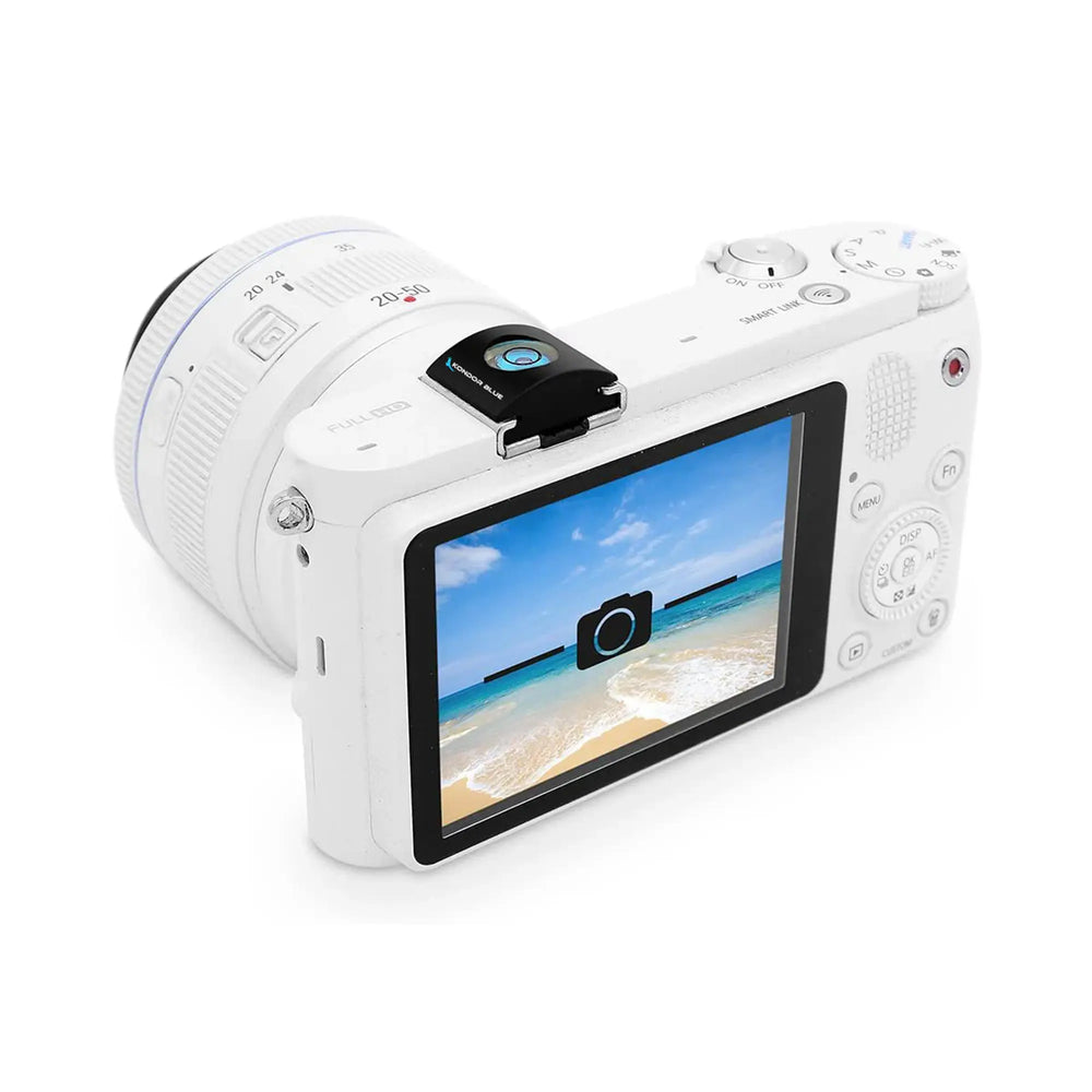 This is a protective hot shoe cover with a bubble level from Kondor Blue. It features a bull's eye-style bubble level that slides snugly into your camera's hot shoe mount, serving to protect the shoe's electronic contacts from dust, oils, moisture, and accidental impact, which prolongs their effectiveness.