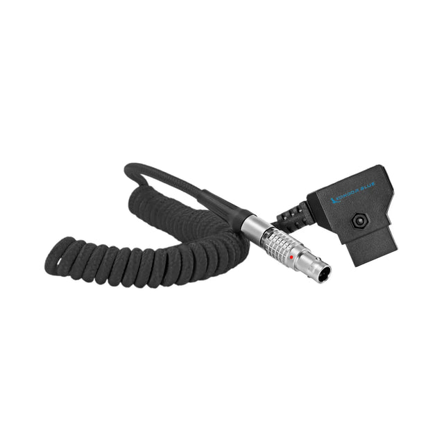 Kondor Blue Coiled D-TAP to LEMO 2 Pin 0B Male Power Cable for Z Cam, SmallHD, Teradek, Black