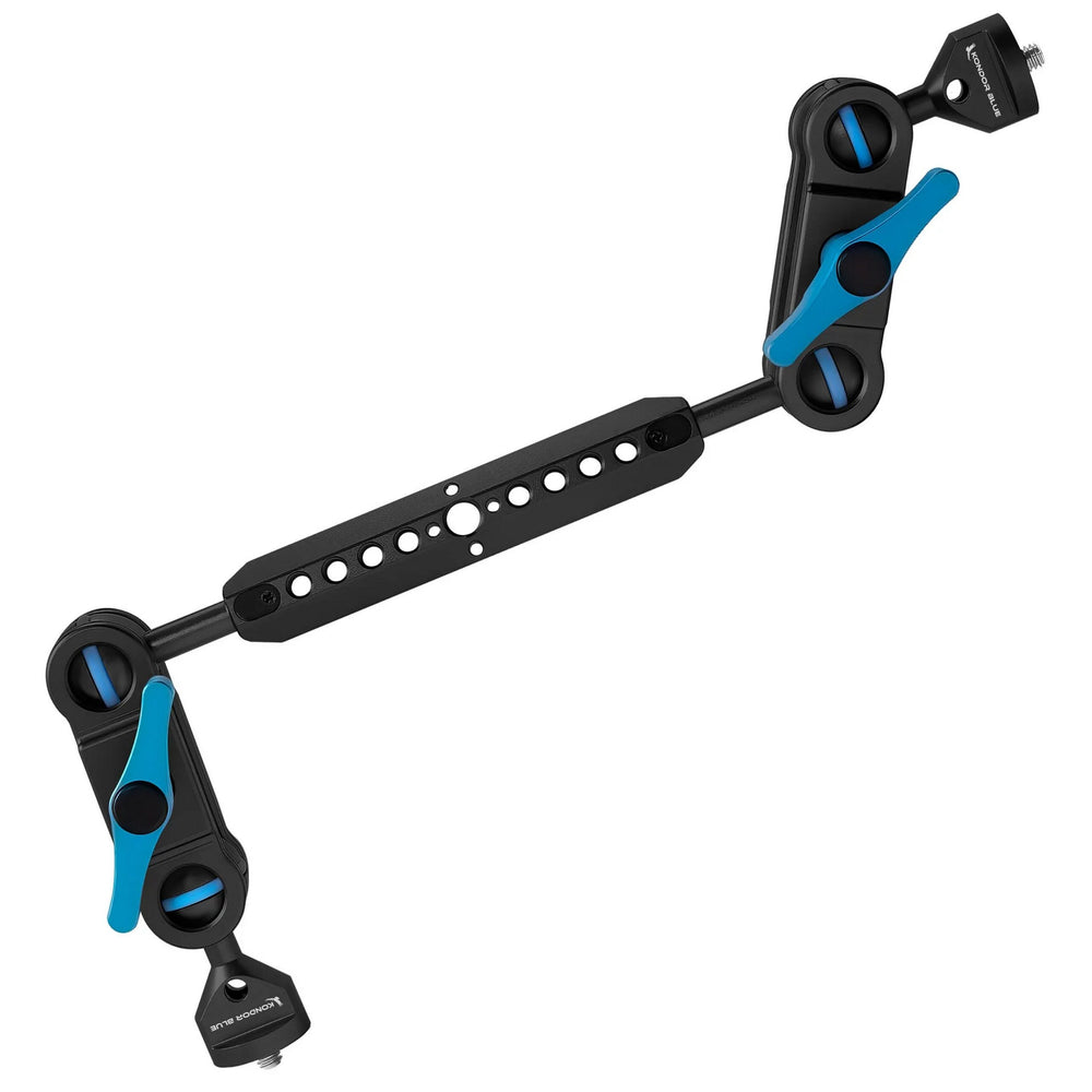Featuring a 1/4”-20 screw at each end, The Kondor Blue Cine Camera Magic Arm Pro 8 features an 8” ball head extension rod for extra versatility and endless mounting options, allowing you to mount any accessory on your camera rig at almost any angle.