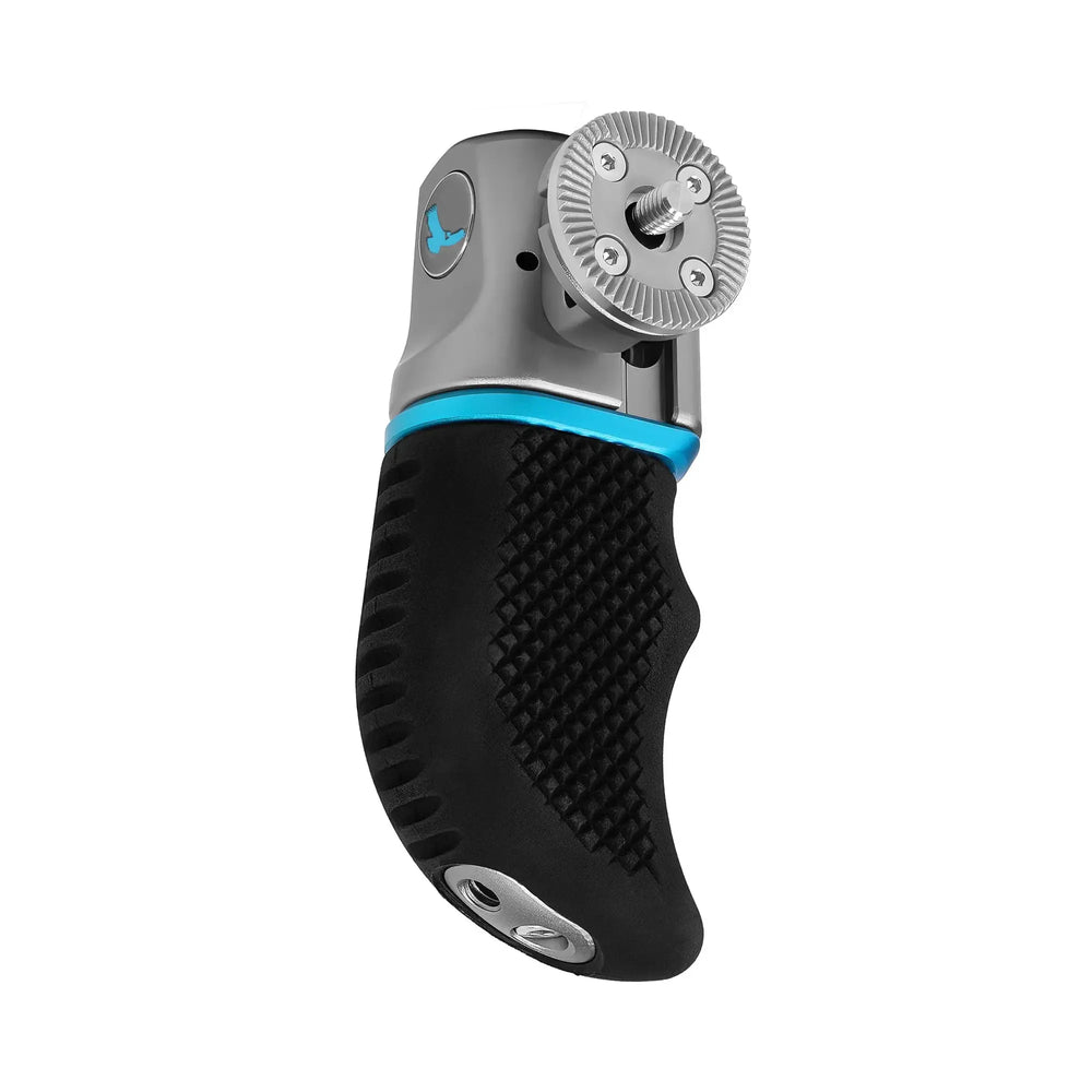 Top top it all off, the grip is ambidextrous and is easily converted into a left or right handle with the need to only remove a single bolt. The side Arri Mounts locate the rosette attachment bracket. This bracket has built-in Arri anti-rotation pins to keep your grip from slipping. The offset distance (20mm) of the rosette bracket has been optimized to work alone or be adapted with a range of Kondor Blue rosette accessories such as our Quick Release Rosette Modules, Nato Clamp to Arri Rosette, and Rosette Cage Adapter to name a few.