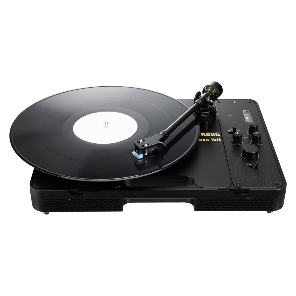 The KORG handytraxx 1bit Portable Record Player is a flagship portable turntable designed for premium vinyl playback and high resolution digital archiving. Built for serious vinyl enthusiasts, it allows records to be enjoyed anywhere while capturing audio in ultra high quality 5.6 MHz 1 bit DSD format. This all in one design combines playback, amplification, and recording in a compact portable form.