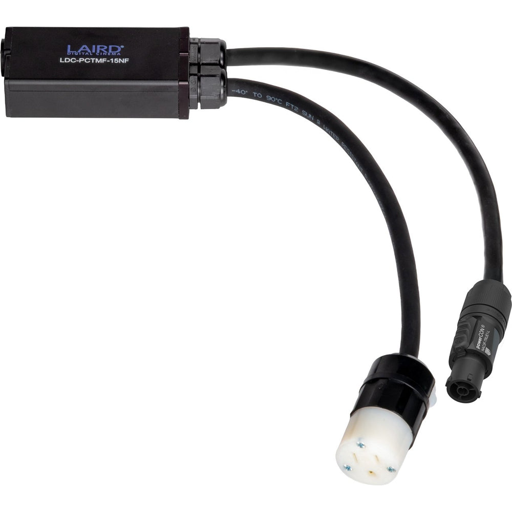 The Laird LDC-PCTMF-15NF power distribution splitter is designed to route power from a Neutrik powerCON TRUE1 male input to mixed professional power outputs used in live production systems. It is built for professional audio, lighting, and event environments that require secure and reliable power distribution.