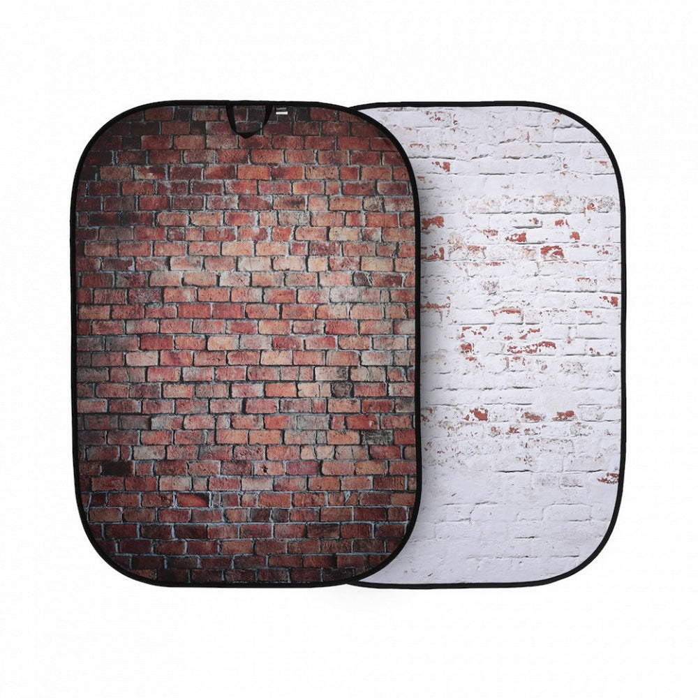 Favoured by image makers worldwide, this background features a characteristic brick design with gritty red and brown tones, complemented by a dramatic vignette. The reverse side offers a lighter rustic brick effect with a weathered white design, accented by hints of red. This dual-sided design not only adds versatility but also ensures a quick and seamless transition between different background styles during a single session. Its collapsible, pop-up construction makes it easy to set up and take down, allowing photographers to stay efficient and agile during their shoots.