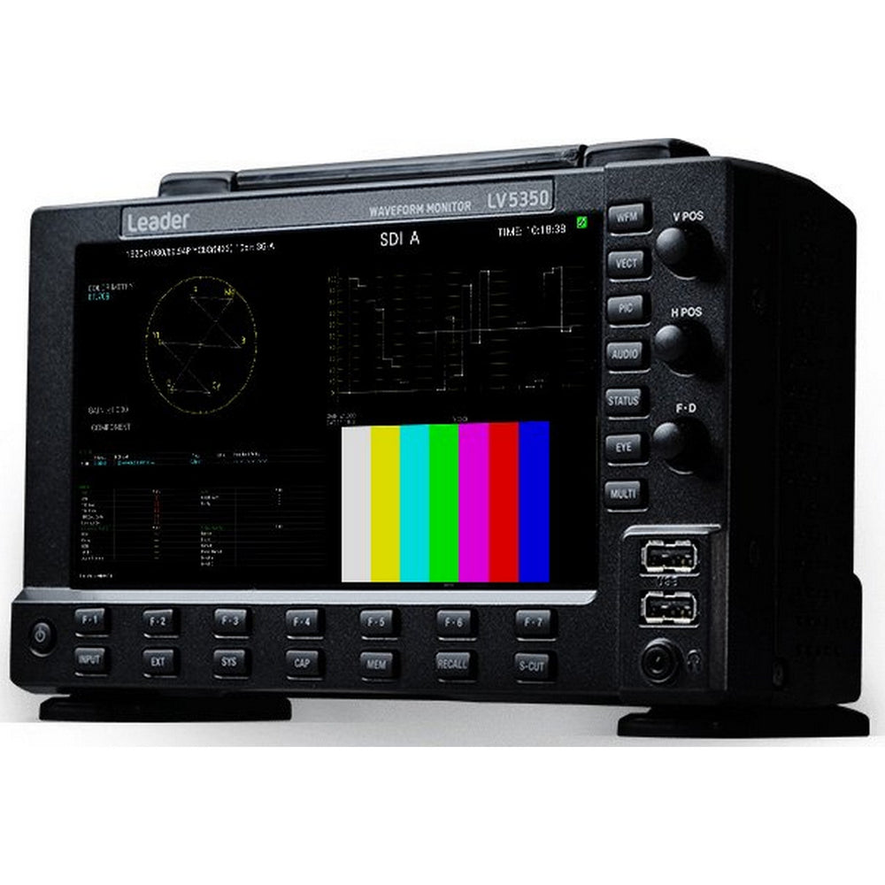 The Leader LV5350 waveform monitor offers a 7-inch HD screen display in a compact 3 x 1/2 RU package that can operate on AC or DC. Waveform, vector and picture with 4K 12G-SDI and audio options . Easy menu operation with touch screen, mouse, and front panel button controls.