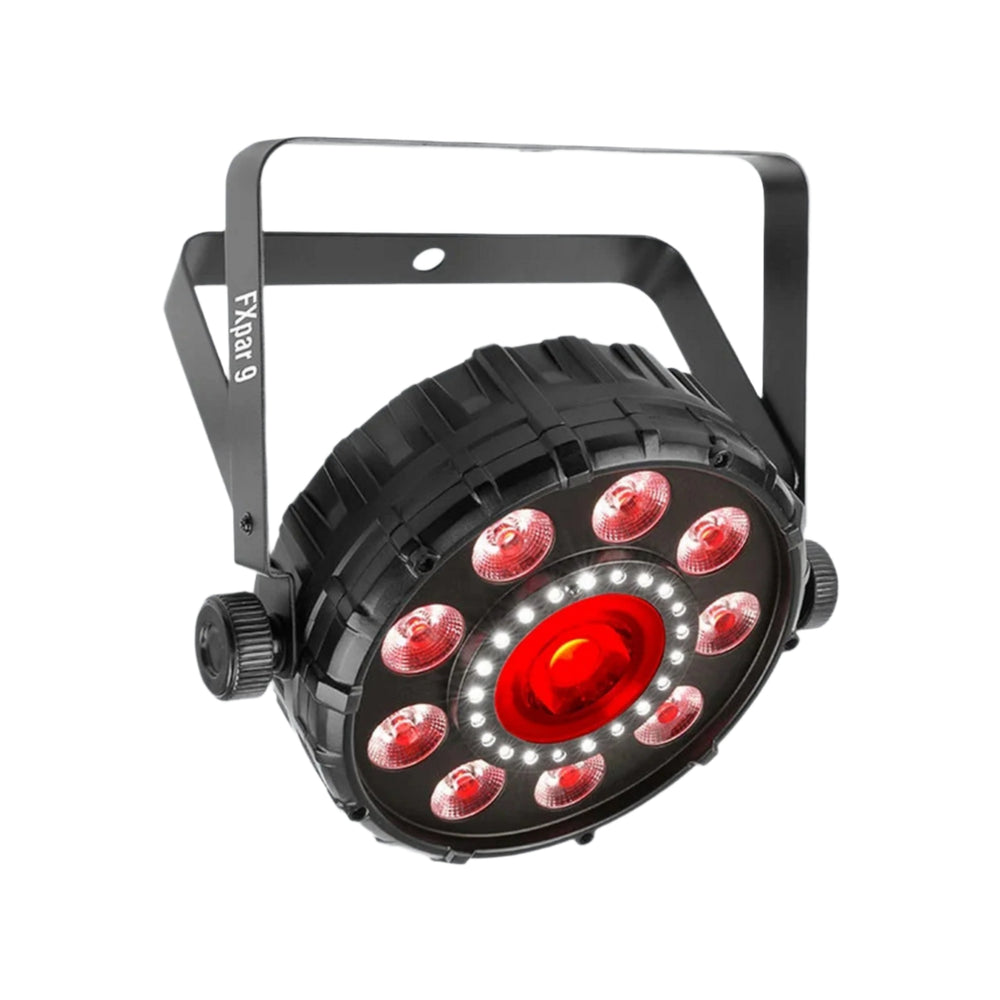 The CHAUVET DJ FXpar 9 is a dynamic and compact multi-effect fixture that combines multiple technologies into a single, powerful unit. With an outer ring of RGB+UV LEDs, a center LED, and SMD strobes, each featuring separate control, this fixture offers unparalleled versatility and creativity.