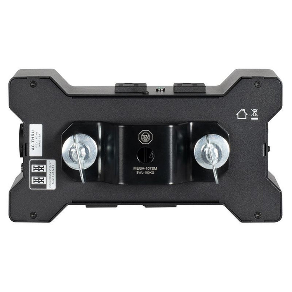 Included with the ADJ Power Bone T1ED Power Distribution Box are a quick-release, locking omega bracket for secure mounting, and a 6ft., 12 gauge, IP65 locking power connector to Edison cable for convenient connectivity.