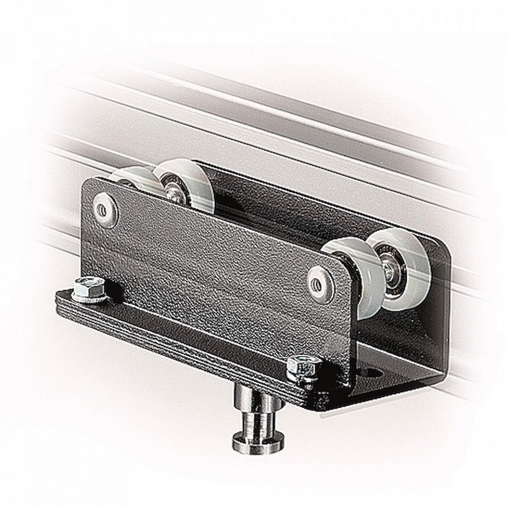 This carriage can be inserted directly at any point on the rail by unscrewing the wheel plate. This is used when it becomes necessary to add a supplementary carriage to an already assembled RAIL SYSTEM installation. It is free-sliding and is suitable for normal loads.