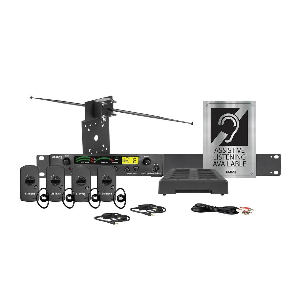 The LS-58 (72 MHz) boasts a high-fidelity, 72 MHz LT-800-072 stationary RF transmitter with a universal antenna kit for optimal signal distribution. The system also includes four (4) advanced LR-5200-072 iDSP receivers, known for their exceptional audio quality with 20 dB less noise than other listening devices. These receivers feature DSP SQ noise reduction technology and an integrated neck loop/lanyard with DSP loop driver for improved compatibility with T-coil hearing aids.
