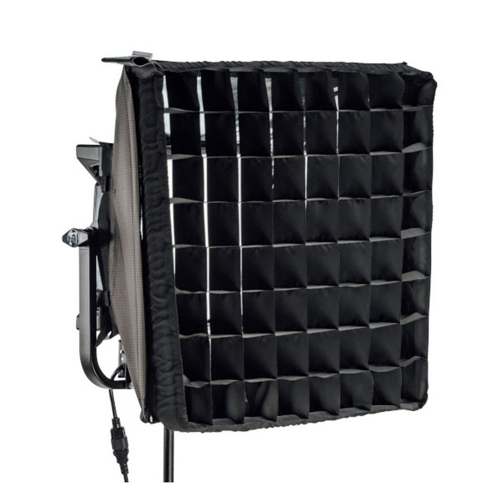 Featuring a snap-open design for fast setup, the Snapgrid for Gemini 1x1 Snapbag from Litepanels narrows the Gemini's 95-degree beam angle to 40 degrees to direct the light to specific areas and eliminate spill light. This version of the Snapgrid mounts onto the Gemini Snapbag.