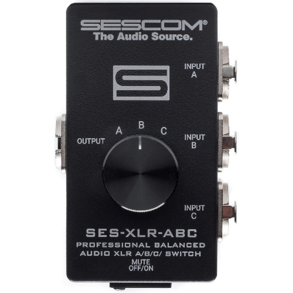 The Sescom SES-XLR-ABC is a durable, passive A/B/C audio switch built for balanced XLR setups. It lets you toggle between three XLR inputs or route one source to three outputs—bi-directionally—with no external power needed.
