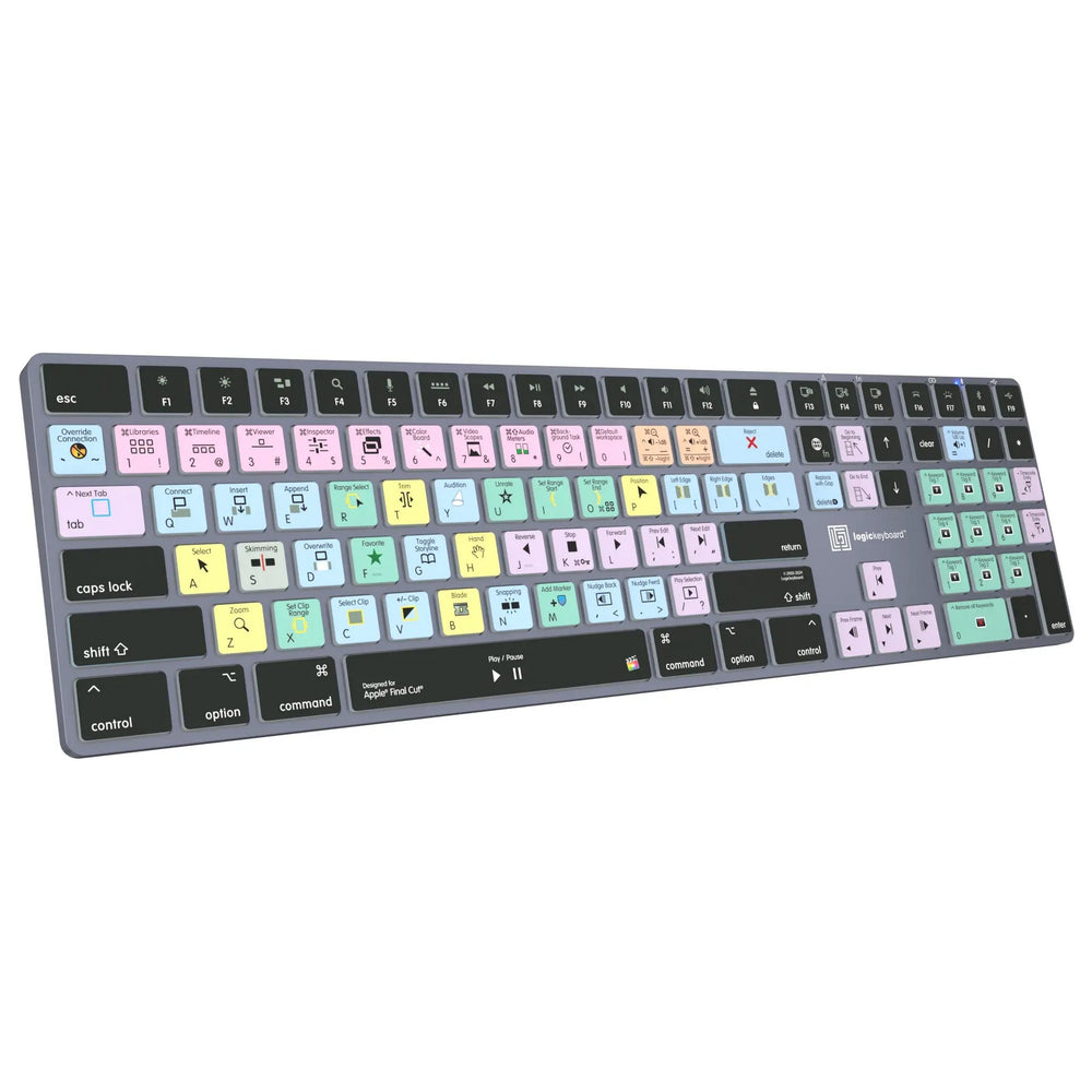 The Logickeyboard Titan Wireless Backlit Shortcut Mac Keyboard for Final Cut Pro X stands out as the top choice for Final Cut Pro editing. With shortcut commands labeled and color-coded on the keys, mastering Final Cut Pro becomes a breeze. Perfect for post-production facilities, professional editing houses, and anyone working with Final Cut Pro.
