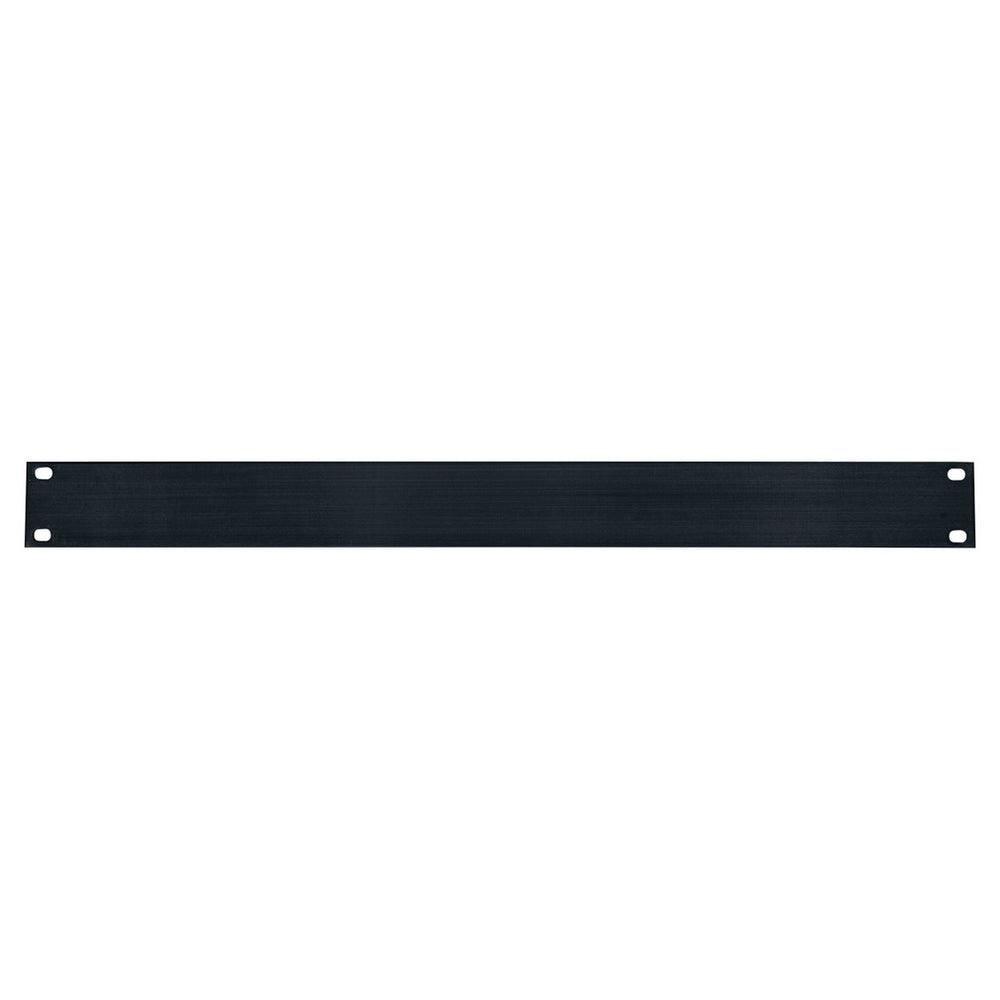 Flat aluminum rackmount panel with brushed black anodized finish.