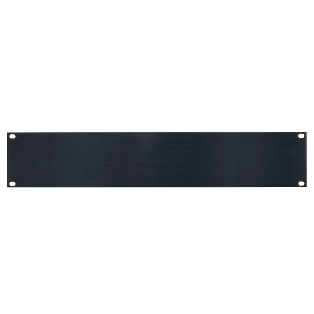 Flat aluminum rackmount panel with brushed black anodized finish.