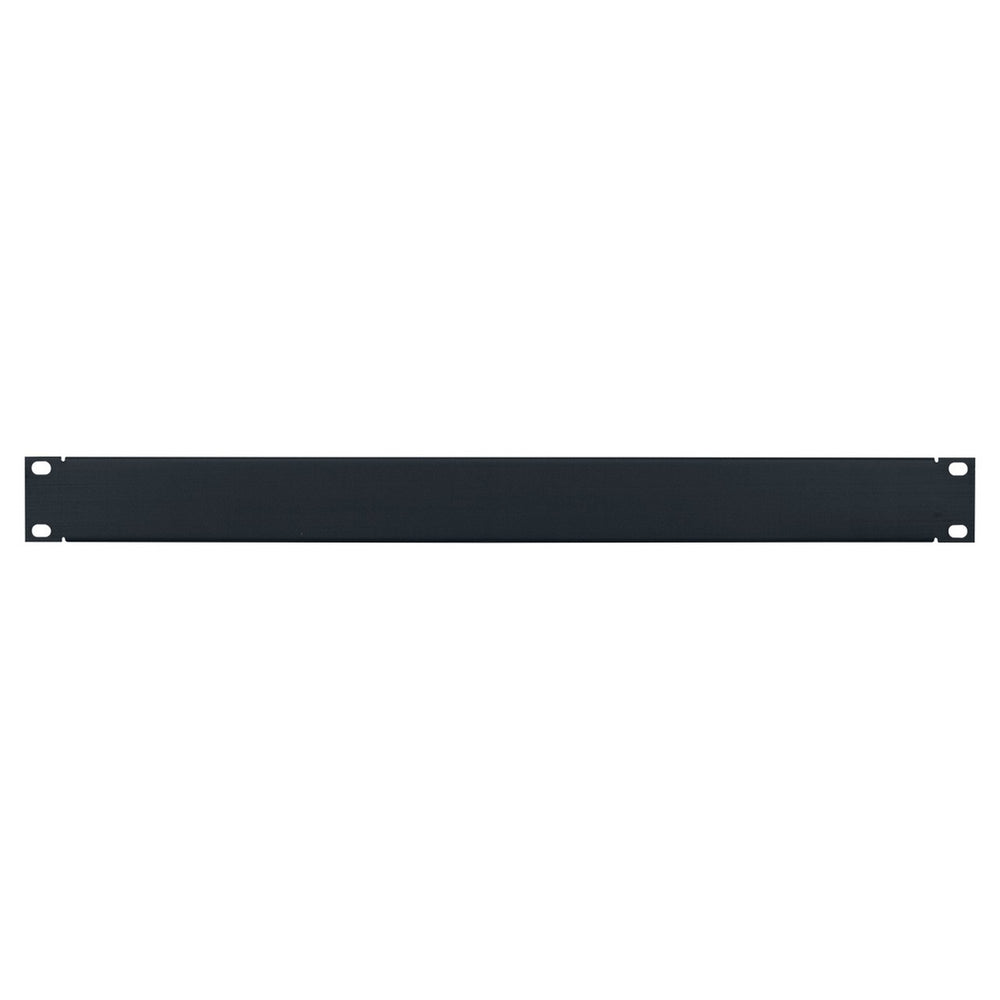 Aluminum rackmount panel with flange and brushed black anodized finish.