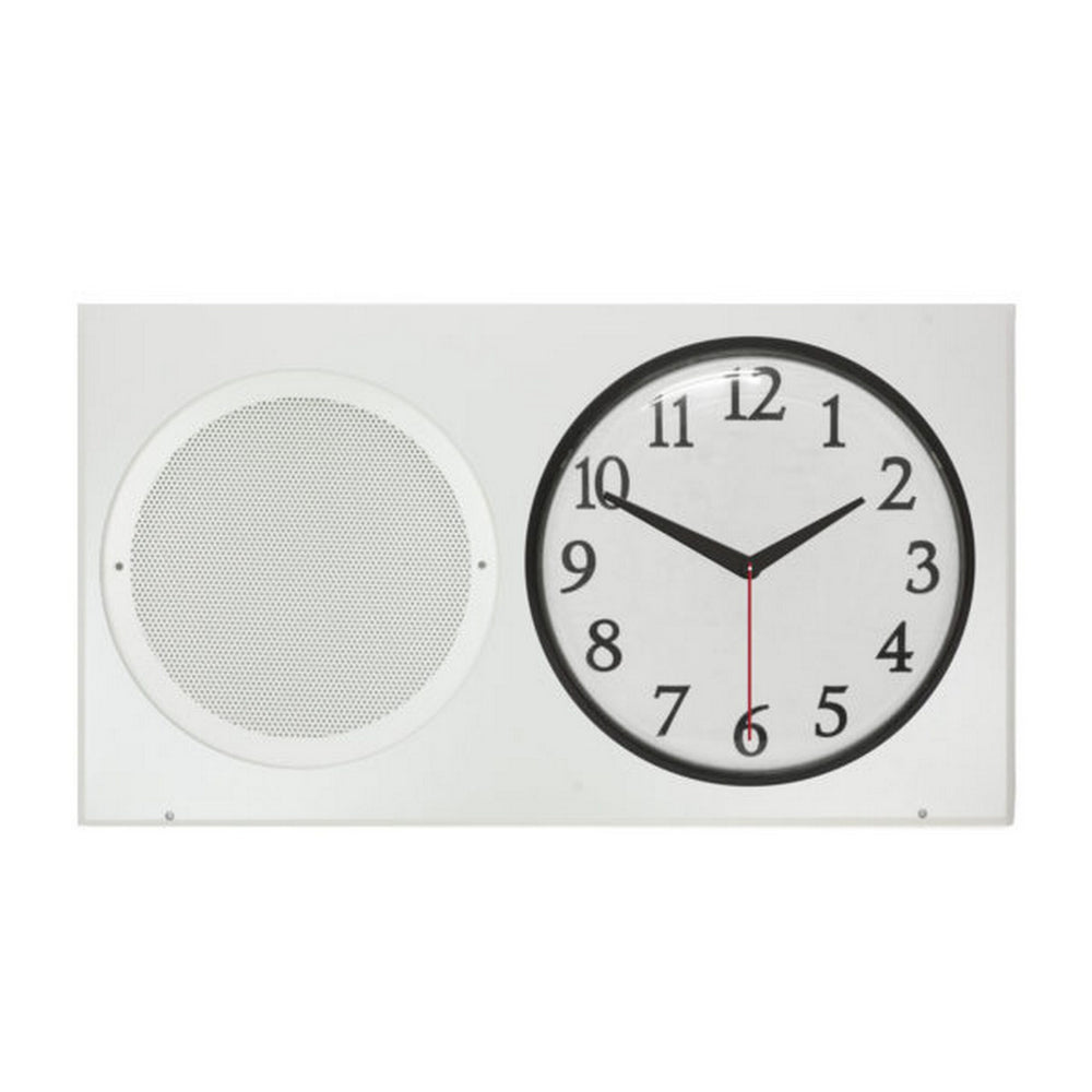 Grille/frame designed to accept a paging speaker, a standard 12 inch analog clock and a recessed backbox. Clock, speaker and backbox not included.