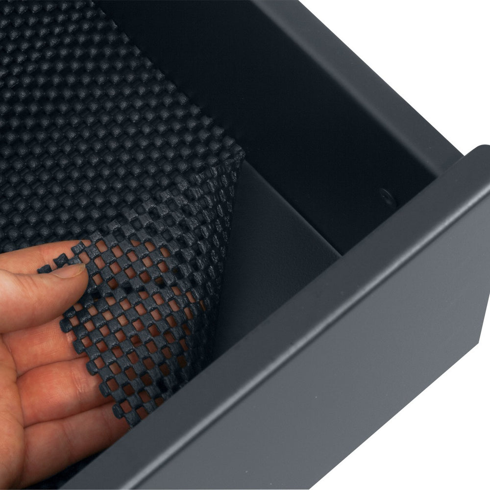 Non-slip perforated drawer mat measures 14 in. x 15.50 in. This mat is also included in UDP Series rack drawers.