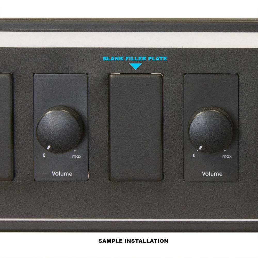 Black filler plates are used to fill empty positions in Lowell panels that have been punched for decorator style devices.
