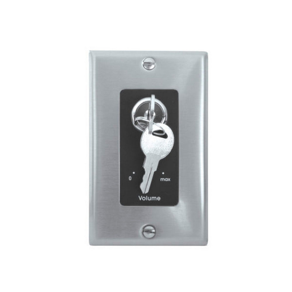 100W mono auto former attenuator-style volume control with key lock switch and one-gang wall plate. Patented design secures volume settings for critical paging and emergency systems. For single or multiple speaker lines. Includes priority relay for emergency bypass.