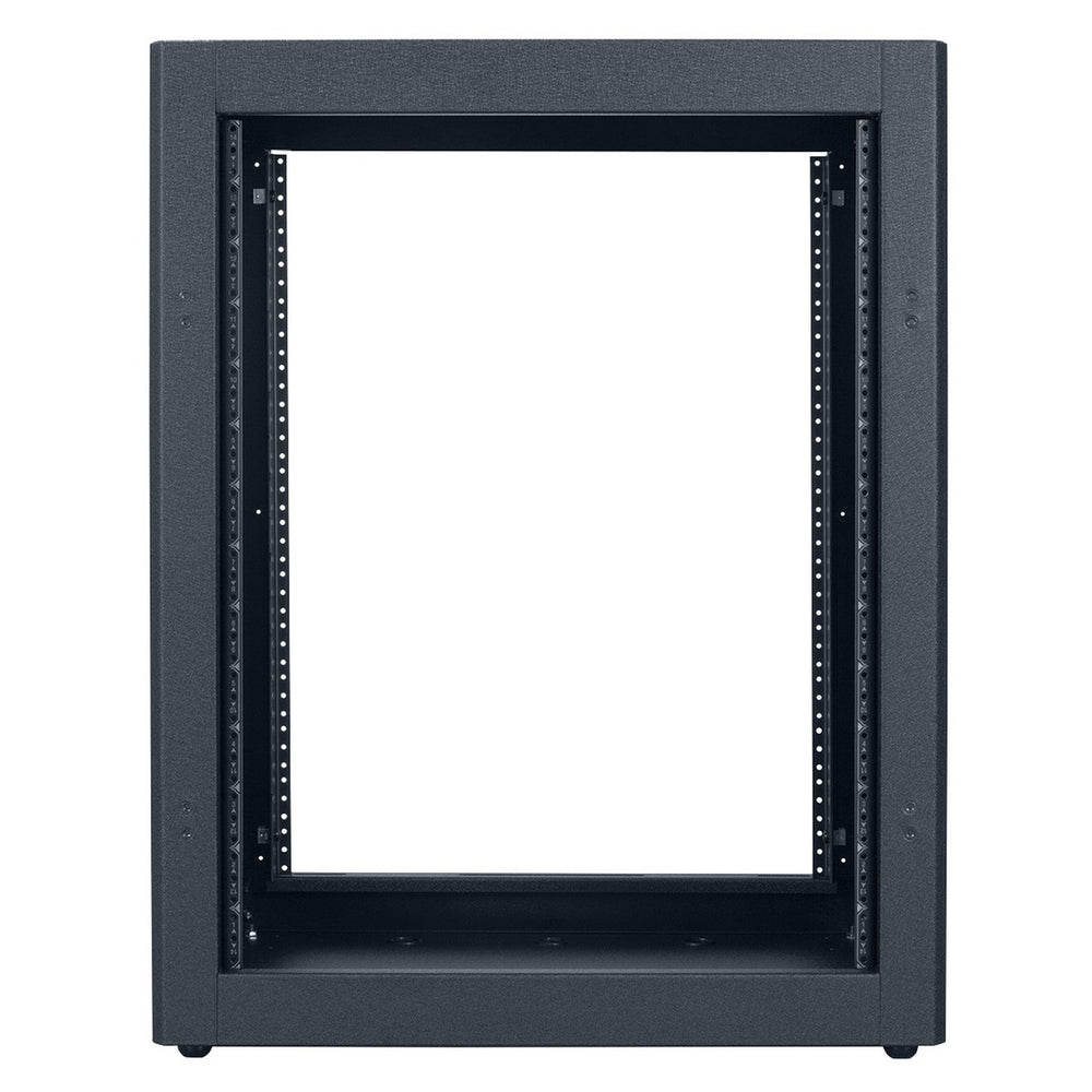 Stand-alone rack with welded sides, top, and base is ideal for electronics kept near at hand, such as on (or under) a counter or desk. Includes rubber feet.