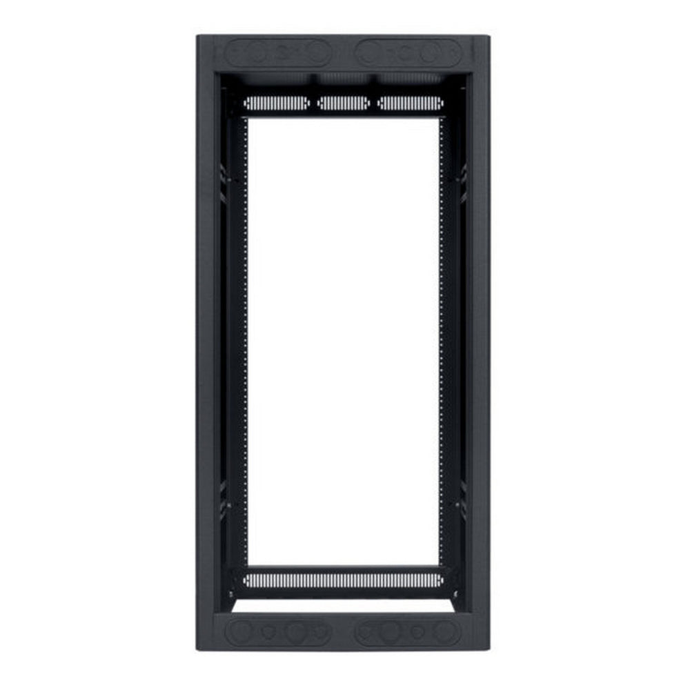 24U x 22”D stand-alone floor rack with adjustable rails is fully welded 16-gauge steel with 14-gauge base, reinforced at all load-bearing junctions.
