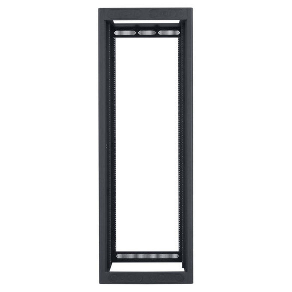 35U x 27”D stand-alone floor rack with adjustable rails is fully welded 16-gauge steel with 14-gauge base, reinforced at all load-bearing junctions.