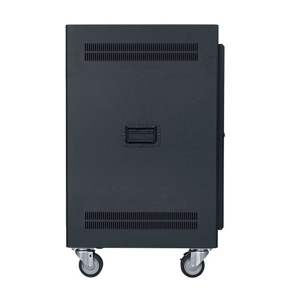 Mobile security rack for educational, institutional or professional settings is 16-gauge steel construction with 14-gauge steel base reinforced at all load-bearing junctions.