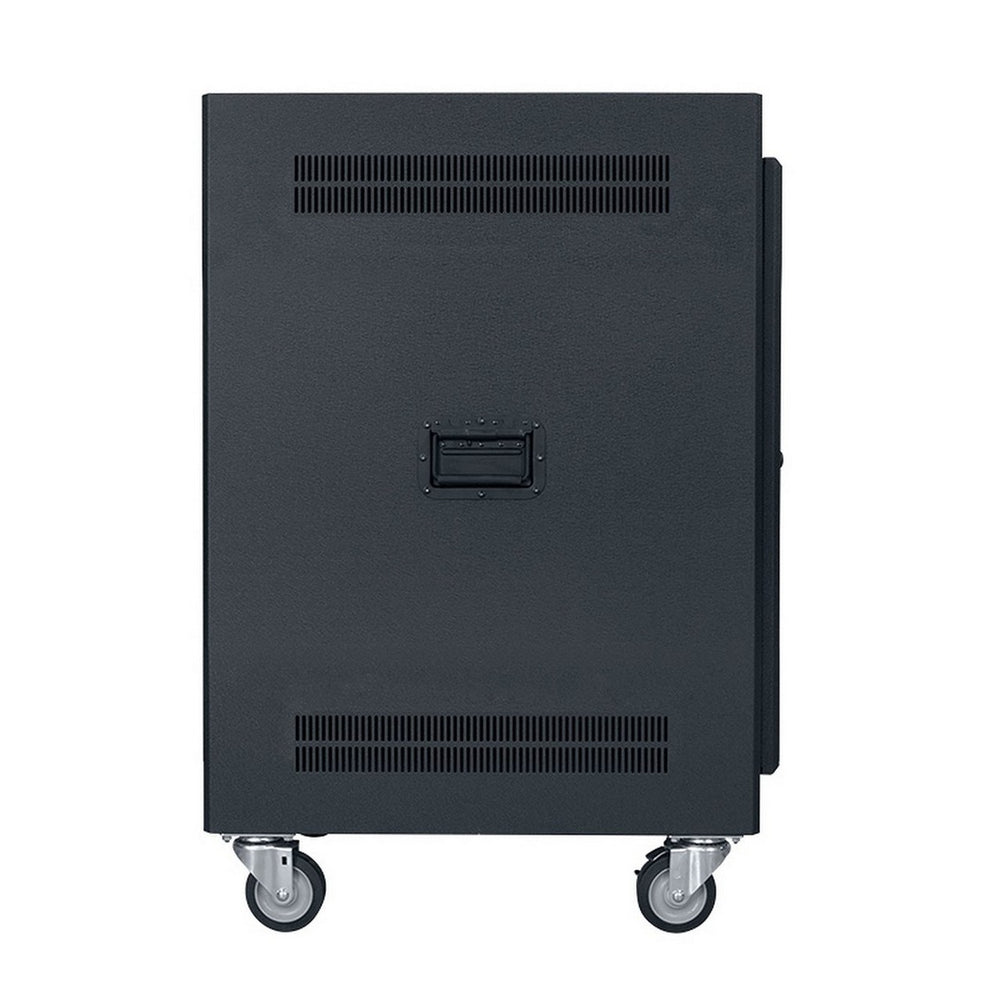Mobile security rack for educational, institutional or professional settings is 16-gauge steel construction with 14-gauge steel base reinforced at all load-bearing junctions.