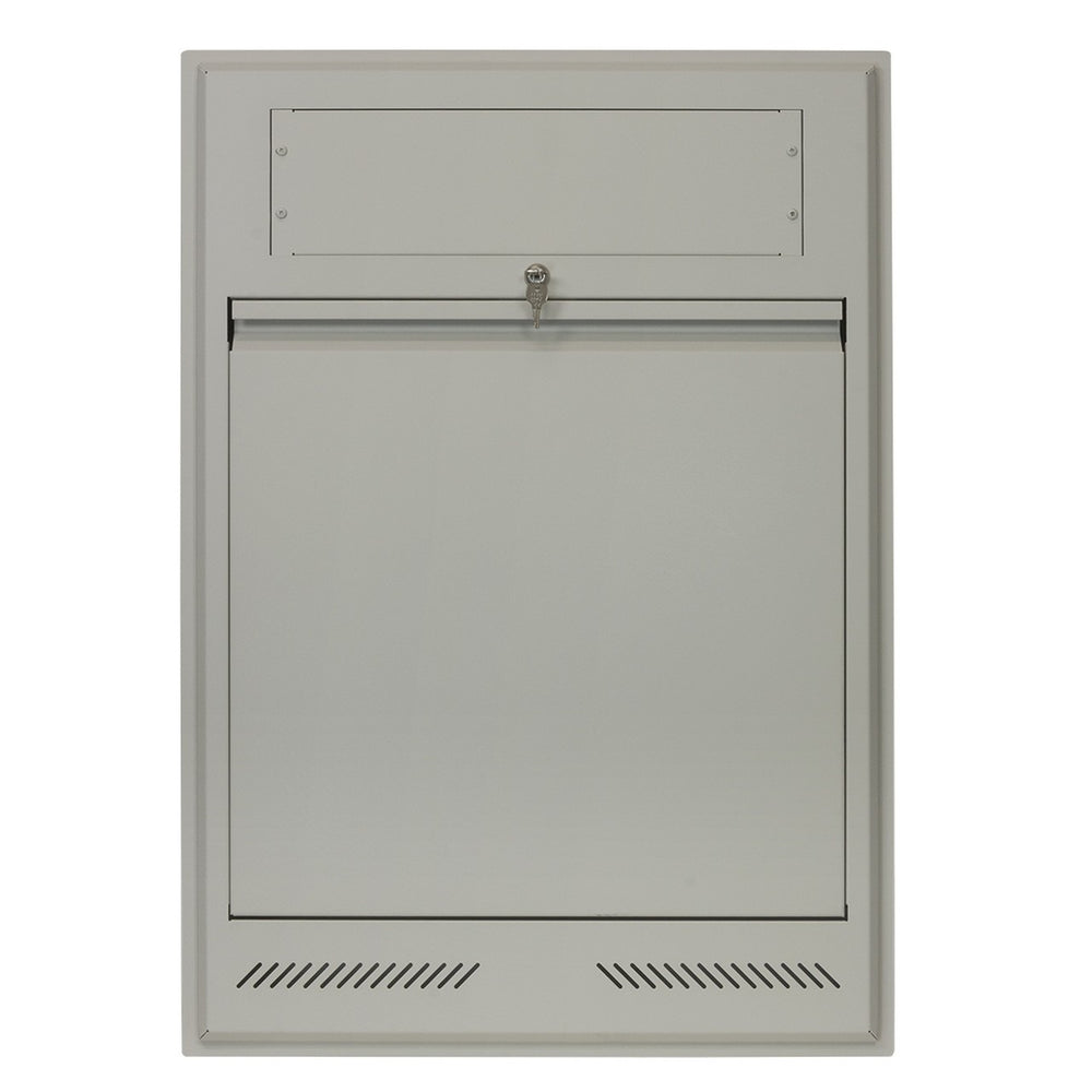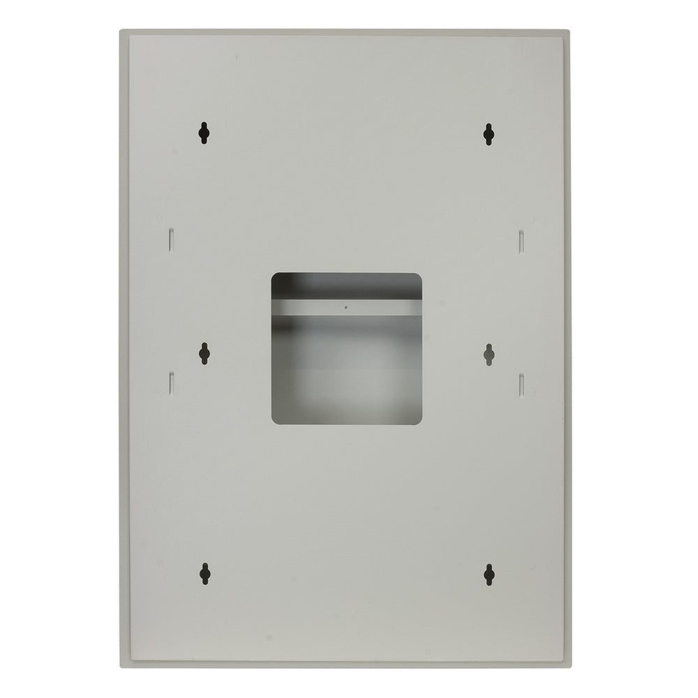 - For recessed installation, this wall-mount rack features steel construction with beveled edges and Network Grey finish, vents in front and base, and compound knockouts for cables (top and base).