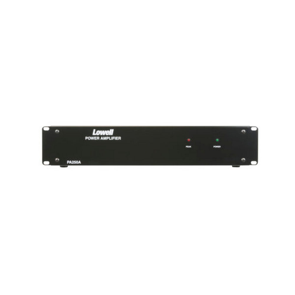 The PA250A power amplifier provides 250 watts of continuous RMS power directly to a 4 ohm speaker load. Switch in rear connects internal 25V/70V output transformer for distributed speaker systems. Use with MA Series mixer-amplifiers to increase power or as all-in-one telephone system paging solution.