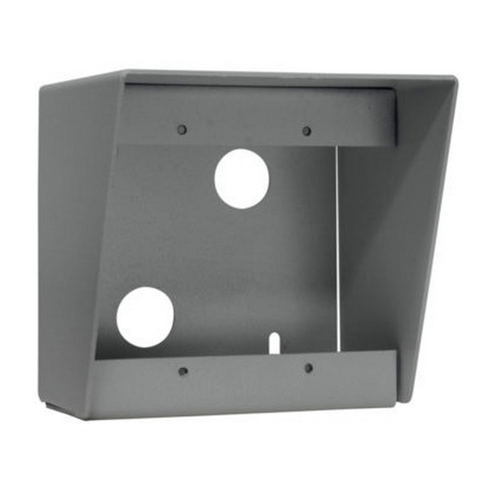 Heavy duty steel surface-mount wall box for use with Lowell vandal-resistant intercom stations (2-gang) features an overhanging top to help protect mounted devices.