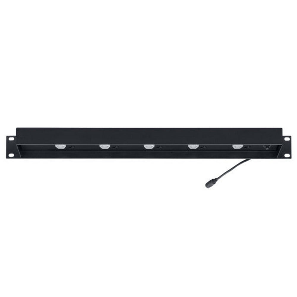 Rack mount panel with LEDs mounts in front or rear panel space. Bright white lights illuminate controls and workspace.