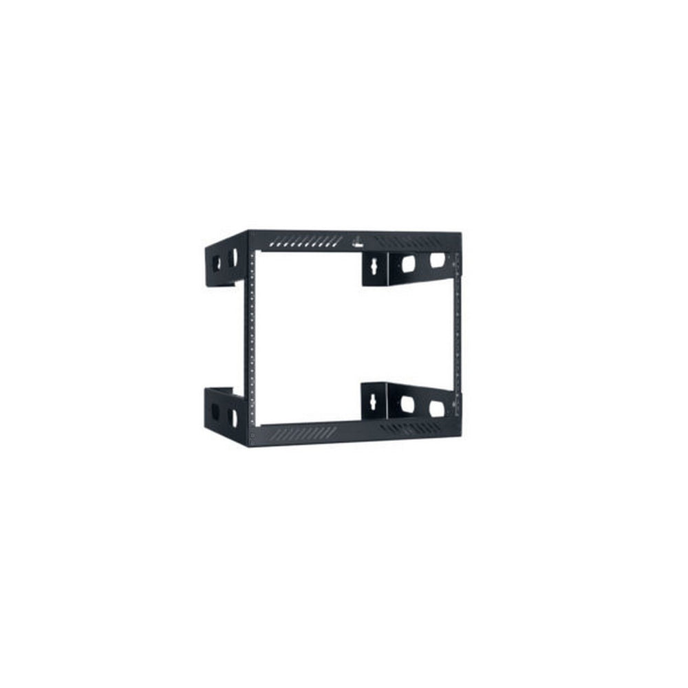 SSlim open-frame wall rack mounts 19"W equipment to a wall or backboard. Top and base are heavy gauge steel that can be mounted on 16" centers to form a stable platform for patch panels, routers, switches, telecommunications, or computer equipment. Ships unassembled.