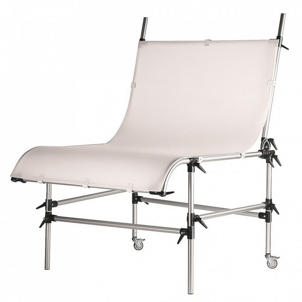 The Plexiglas measures 125cm by 79cm, and can quickly be mounted with the included fastener tape. The impressive panel reaches a vertical height of 193cm when the back is in It's vertical position. With a dimension of 200 cm by 122 cm, you'll be able to capture a wide range of items in their best light. Also featuring an adjustable tilting back, you'll be able to make small adjustments with ease. This still life table can also be fitted with wheels for easy manoeuvrability.