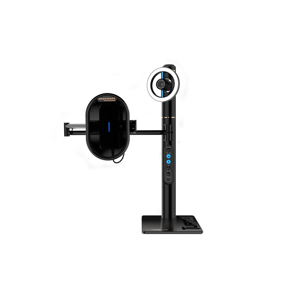 The Turret delivers a unique, easy-to-use solution for userswho need for a complete high-performance equipment system for streaming andpodcasting. The Turret has a full HD webcam with built-in H.264 videocompression, a high-quality 48kHz/16-bit USB condenser microphone with popfilter and an LED light ring, daylight-balanced, with both cool and warm filteraccessories. The Marantz Professional Turret is a unique, all-in-one broadcasttool that gives any podcaster, gamer or live internet streamer high-qualitycomponents with a multitude of configurations for creating a professional presentation.Itās compact and simple, perfect on a desktop and portable enough to take onlocation.