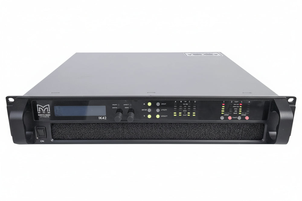 The iKON iK42 is an advanced 4-channel power amplifier which combines very high power density with superb audio performance, state-of-the-art DSP and network control. A dedicated controller amplifier for Martin Audio Wavefront Precision line arrays and XE Series stage monitors, the iK42 can also provide multi-channel amplification across the Martin Audio loudspeaker range.