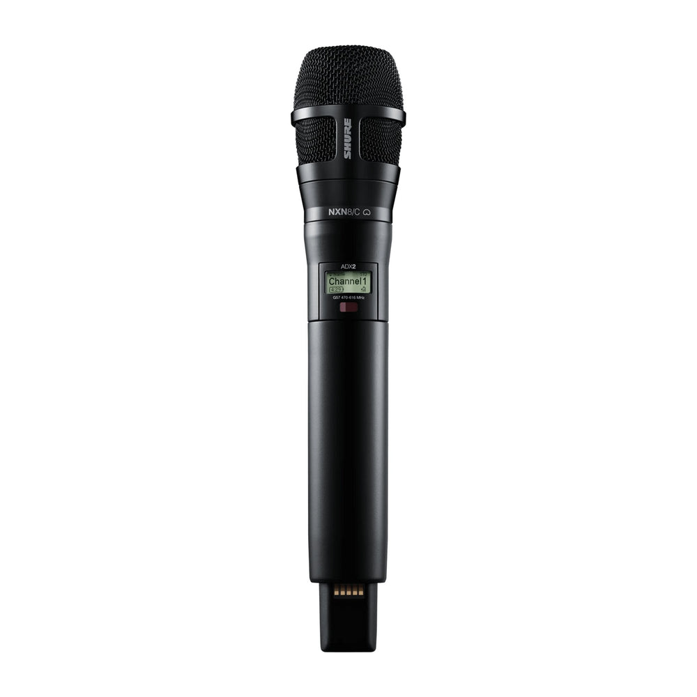 The Shure ADX2/N8C Cardioid Handheld Wireless Microphone Transmitter, operating within the G57 frequency band (470-616 MHz), delivers unparalleled audio performance, tailor-made for demanding professional environments such as stage performances, lectures, and conferences. Boasting a remarkable tuning range of up to 184 MHz, this transmitter adeptly navigates diverse scenarios, guaranteeing uninterrupted, crystal-clear sound quality by effectively avoiding interference. The ADX2/N8C's design is as practical as it is sophisticated, integrating a long-lasting, rechargeable battery that offers up to 9 hours of continuous use, removing the hassle of mid-performance battery swaps.
