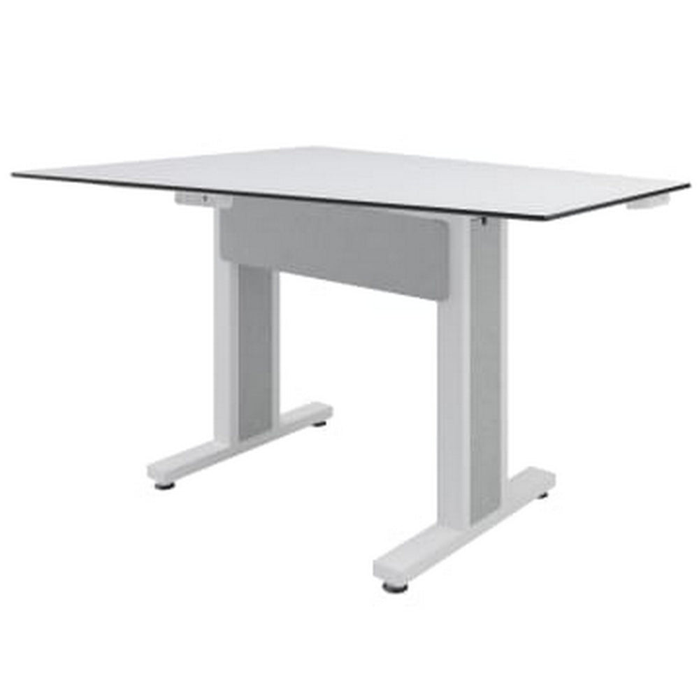 - Table top manufactured in Designer White compact laminate for a ultra thin, durable worksurface that can wIt'stand day-to-day meetings and is easily cleaned after each use