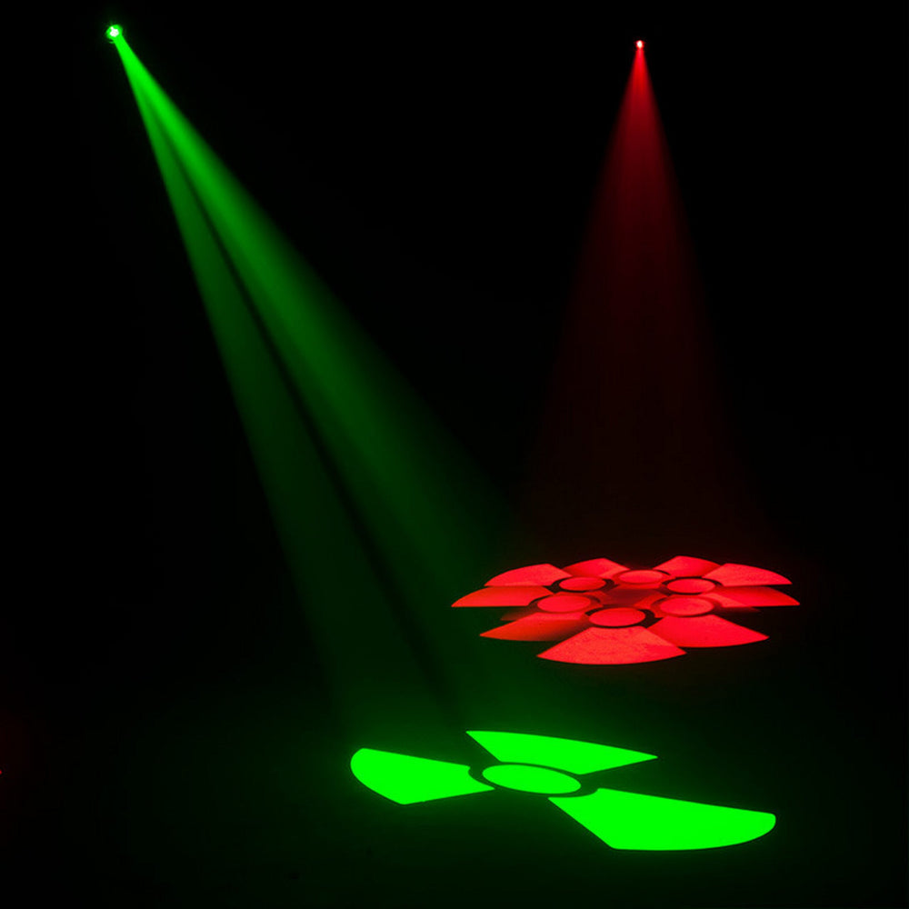 The Focus Spot 2X is fitted with 8 colors plus spot and split colors. It has 6 rotating, replaceable GOBO patterns plus spot. The color wheel and GOBO wheel work independent of each other. All GOBOs are indexable.