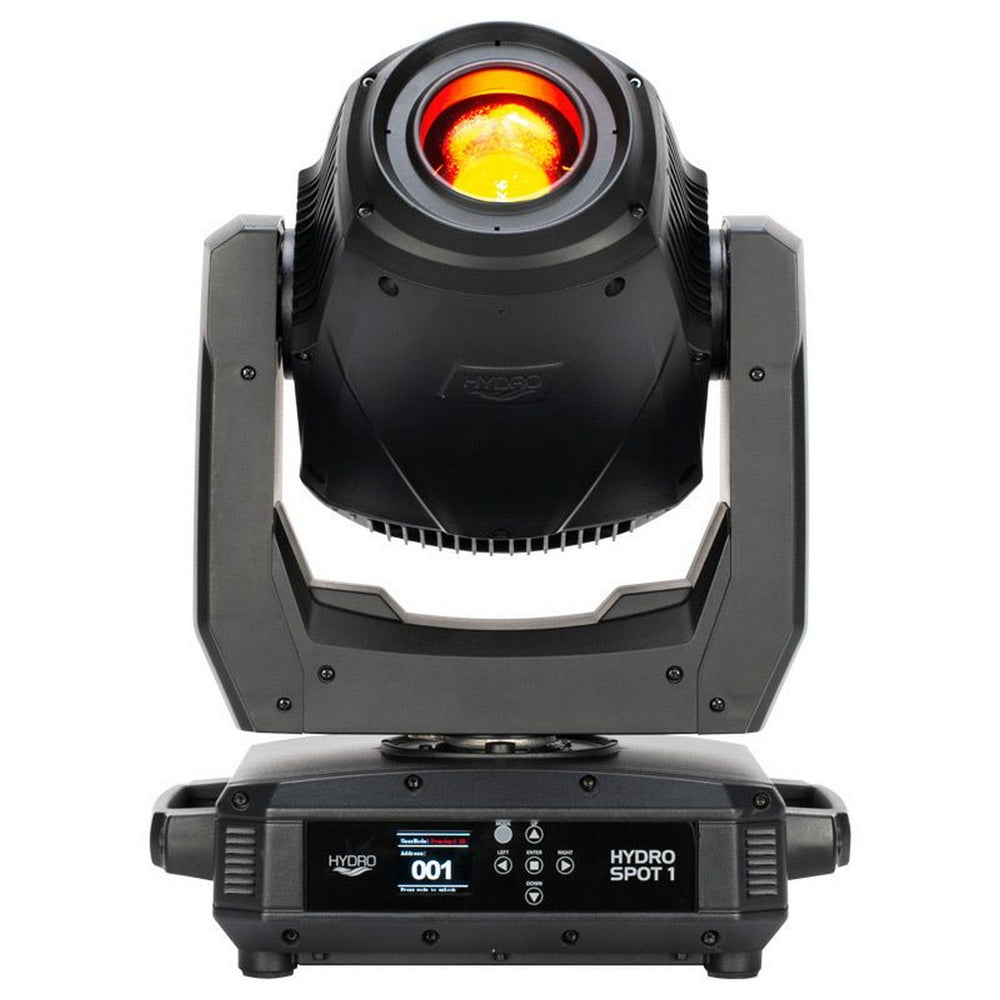 An extensive feature set provides lighting designers using the Hydro Spot 1 with a wealth of creative potential. This starts with motorized zoom, allowing for a variable beam angle of 12° ~ 23°, which is paired with motorized focus to ensure pattern projections remain sharp regardless of distance. The fixture features two independent color wheels, each loaded with 8 dichroic colors, including CTO, CTB and UV filters. It also features a separate GOBO wheel, which has 6 slots for replaceable, rotating glass or aluminum GOBO patterns. Two rotating prisms (5-facet linear & 6-facet circular) allow for the creation of stunning aerial effects, while two frost filters (medium and heavy) allow for blurring the edges of GOBO patterns and creating a wash output, respectively.