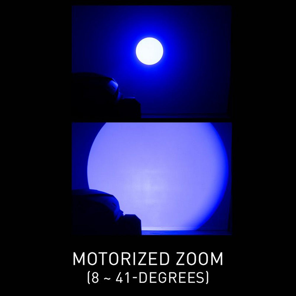 Motorized zoom allows the fixtureās beam angle to be altered between a tight 8-degrees and wide 41-degrees, while two frost filters can also be applied to soften the beam edges and further widen the beam angle. The medium frost filter is designed to lightly blur the edges of GOBO/prism effects, while the heavy frost filter allows the fixture to be used for wash lighting duties. An almost limitless spectrum of colors can be generated by the fixture thanks to CMY color mixing, while a separate variable CTO flag allows for color-corrected white light output. In addition, a color wheel is also provided with seven dichroic color filters, including CTB and High CRI options.