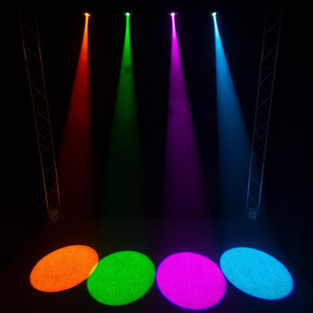 The ColorKey Mover Halo Spot with Color Changing LED Halo is a compact moving head fixture designed to create dynamic lighting effects. It features a high-output 30W white LED surrounded by a color-changing RGB LED halo, both controllable independently via DMX for endless creative possibilities.