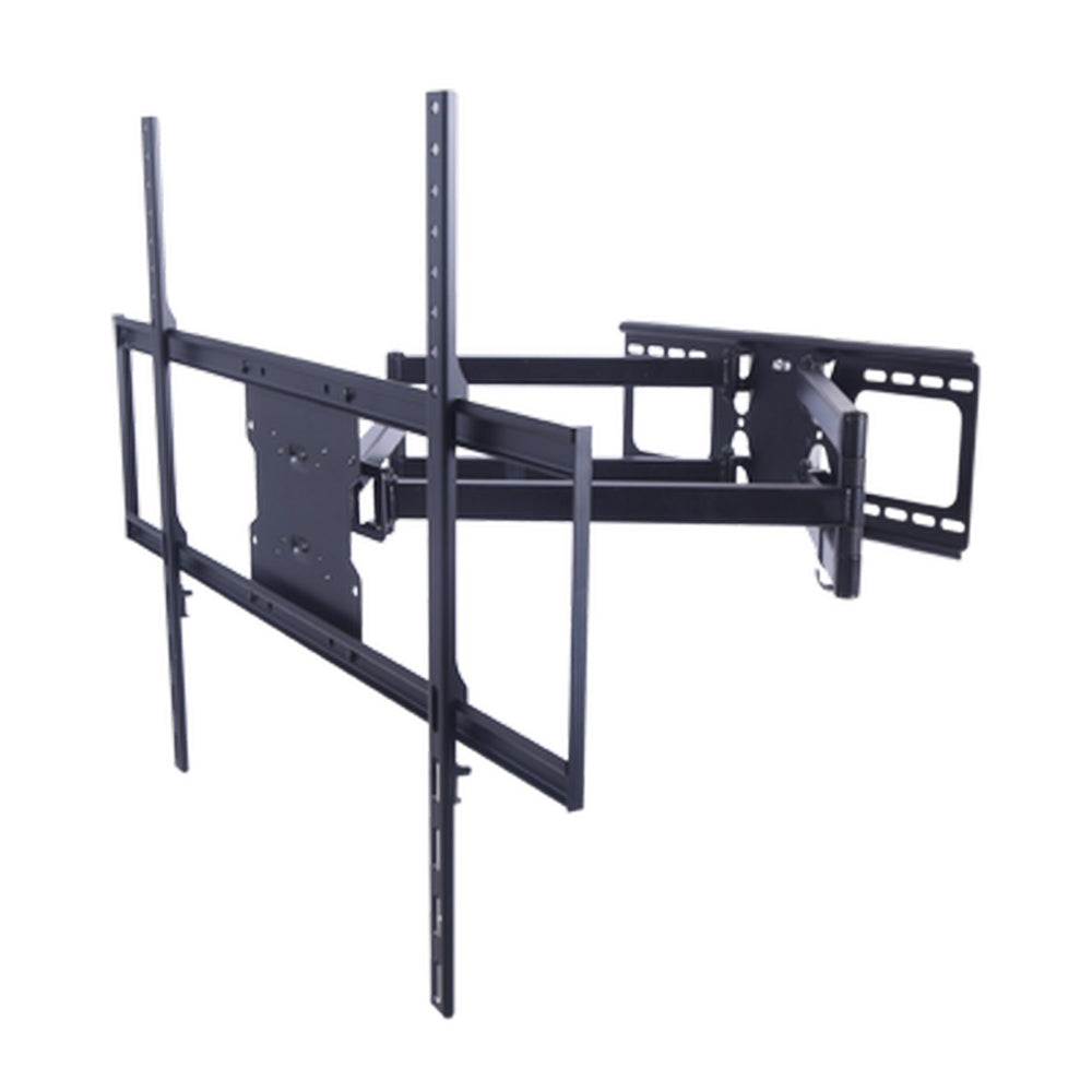 The MV-ARM-XL is designed for use with large flat panel displays ranging in size from 37” -70”, and with DUAL ARM SUPPORT will hold units weighing up to 154 lbs. The MV-ARM-XL supports up to VESA 800mm x 400mm bolt hole patterns making any installation quick and easy. A matte black powder-coat finish will match perfectly with the typical flat panel LCD, PLASMA and LED displays that are popular today.